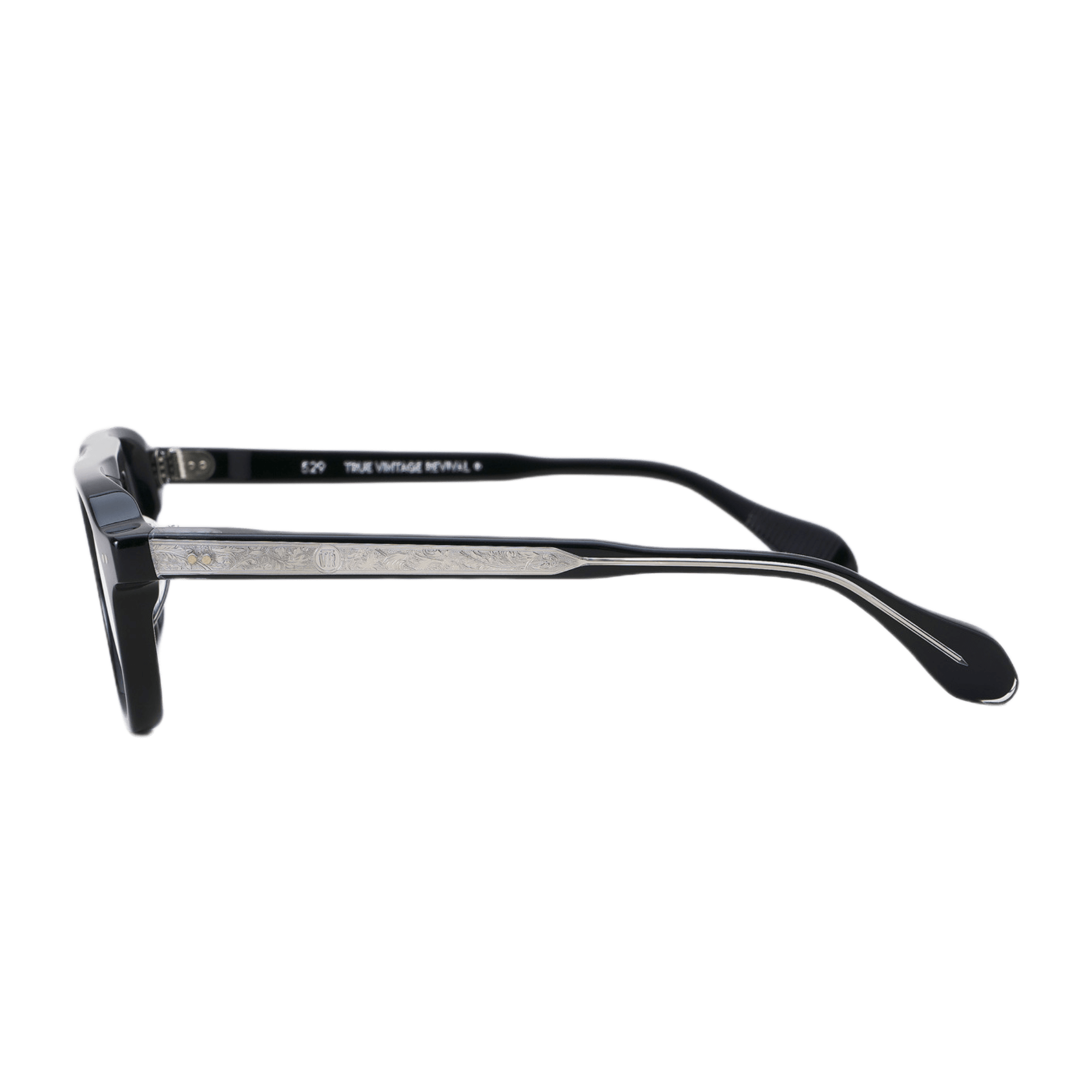 Where function and fashion meet, the novelty became a cult classic across the globe with its striking single bridge — today updated with rounded and geometric forms. The TVR®529 is an iconic shape inspired by American playwright and writer Arthur Miller, who famously wore this eye frame in the 1960s. Miller, who was also Marilyn Monroe’s husband, made the strong and bold masculine shape in demand with the profound single brow bar.