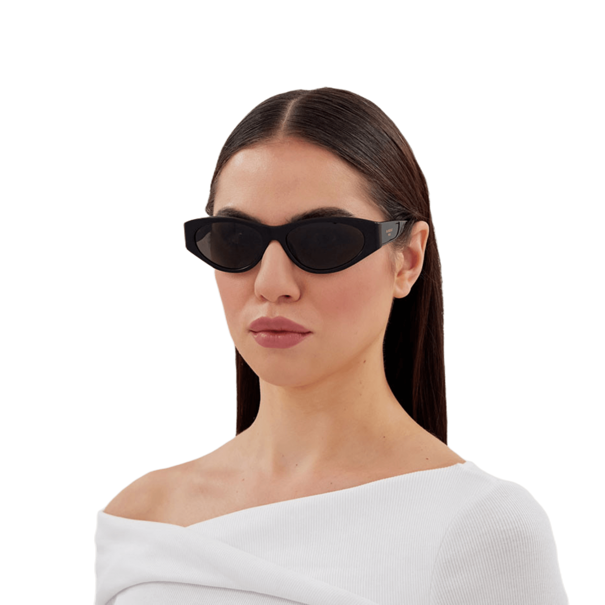 Boldly feminine with cat-eye flair, the Balenciaga BB0367S features a soft acetate frame in a subtly oversized silhouette, accented by the “Balenciaga Paris” logo in metal on the temples. Crafted from recycled acetate for lightweight durability, these sunglasses offer full UVA/UVB protection and deliver standout style with modern practicality. Italian-made with unwavering attention to detail, this luxe frame makes a confident statement while embodying Balenciaga’s signature avant-garde edge.
