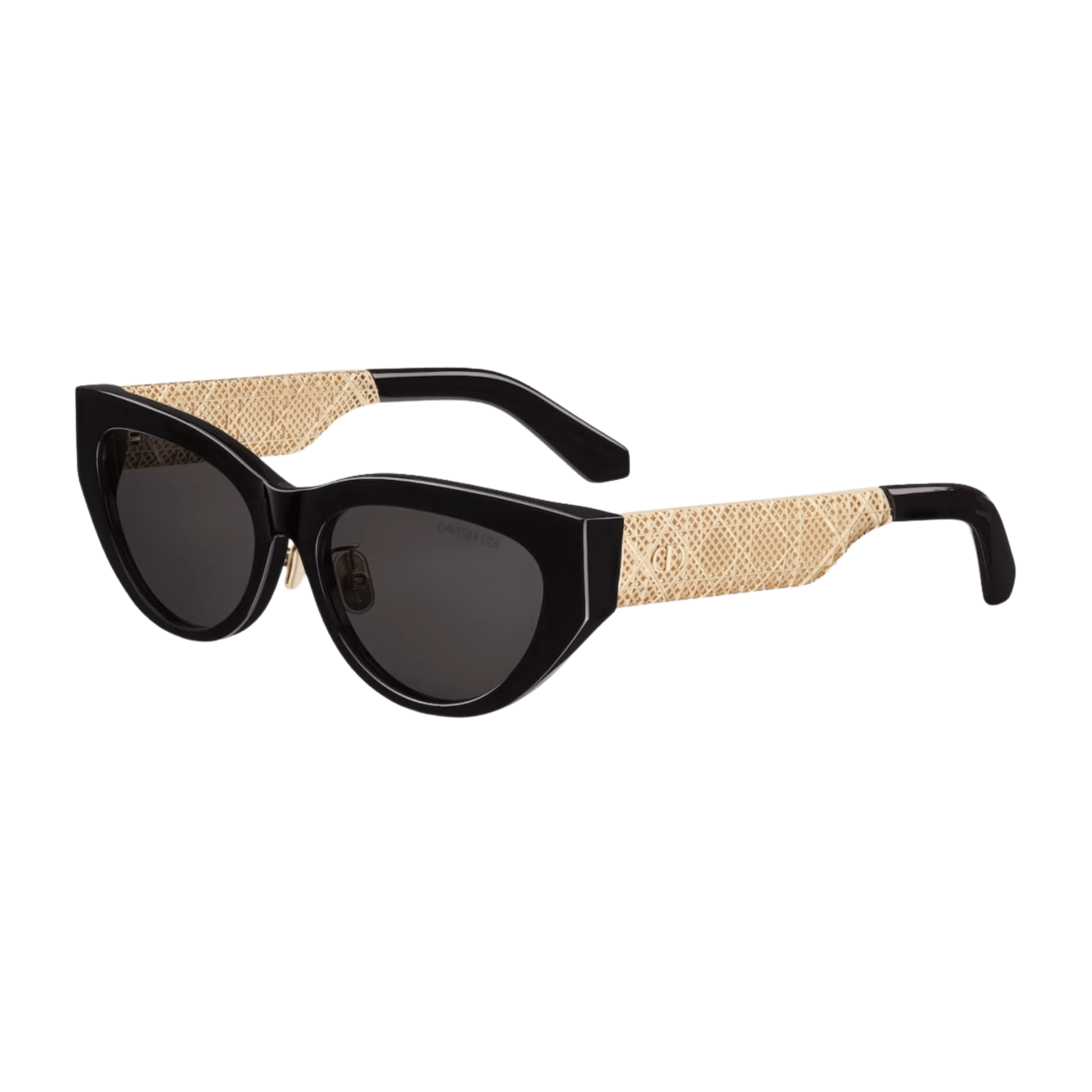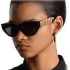 แว่นกันแดด Dior Résille B1F โดดเด่นด้วยรูปทรงผีเสื้ออันสง่างามที่ประดิษฐ์จากอะซิเตทสีดำเงาเพื่อรูปลักษณ์เหนือกาลเวลาและสวยงาม. ขาแว่นโลหะเคลือบทองสลักลวดลาย Cannage อันเป็นเอกลักษณ์ของ Dior และลายเซ็น CD อันประณีตเพิ่มสัมผัสแห่งความหรูหราแบบโอตกูตูร์. เสร็จสิ้นด้วยเลนส์สีเทาที่ปกป้อง UVA/UVB เต็มรูปแบบ, เป็นการผสมผสานที่ลงตัวระหว่างการออกแบบที่หรูหราและความสง่างามในชีวิตประจำวัน.
