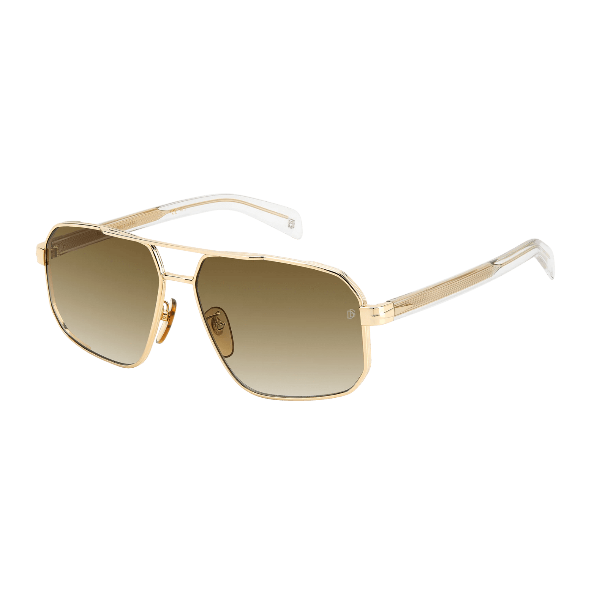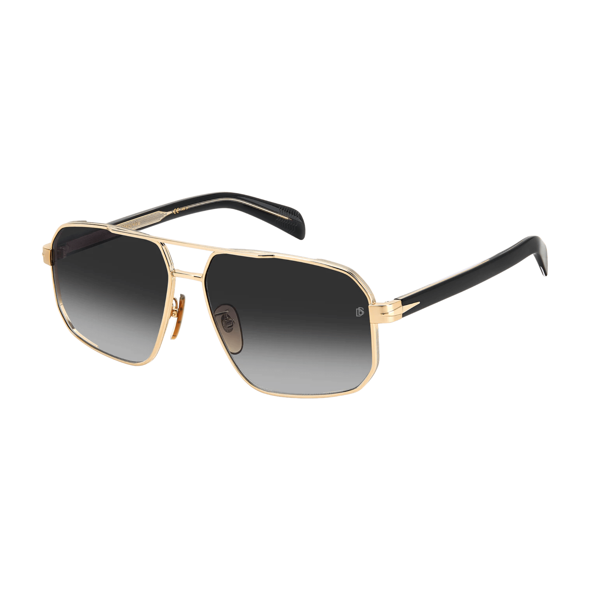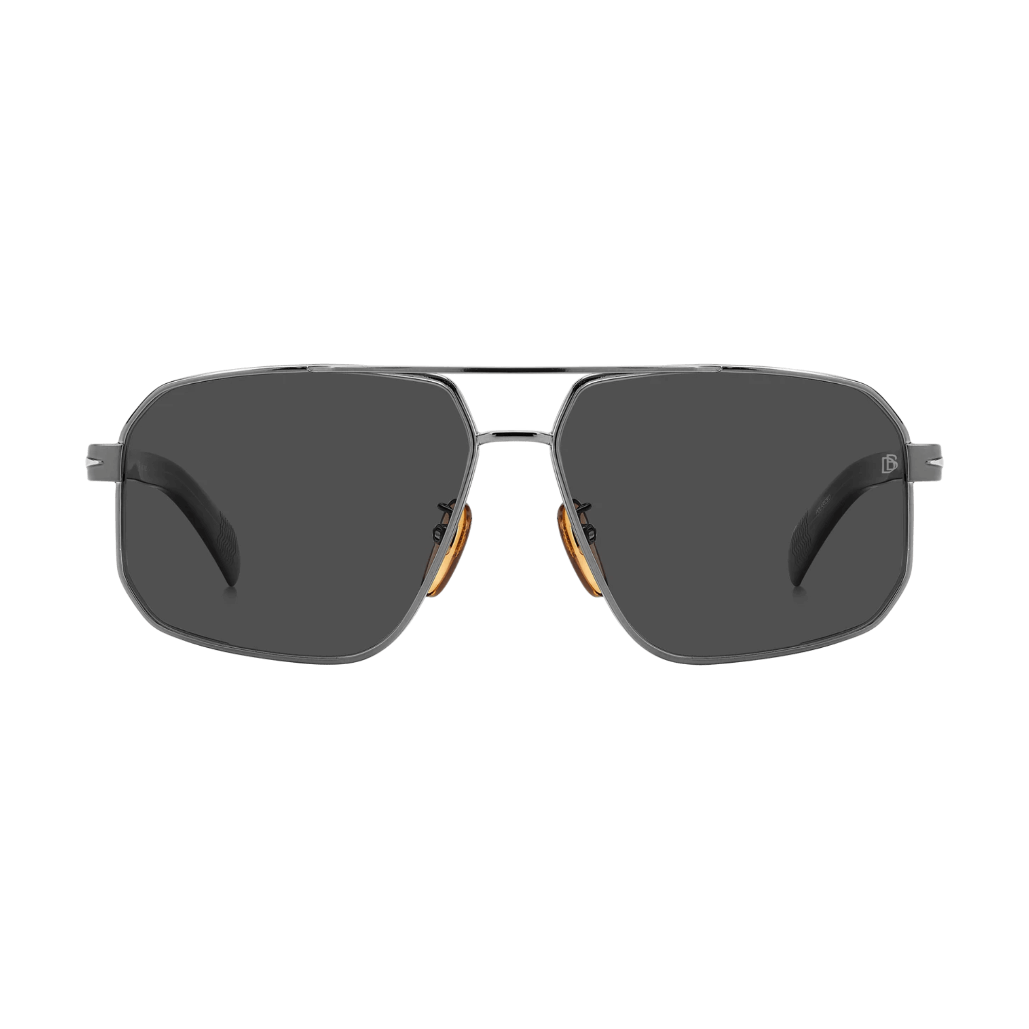 มีสะพานคู่ด้านหน้า, แว่นกันแดดเหล่านี้ได้รับการออกแบบมาสำหรับผู้ชายที่มีความซับซ้อนและมีเสน่ห์ที่น่าหลงใหล. กรอบโลหะ, ประดับด้วยโทนสีอันสง่างาม, โชว์รายละเอียดอันเป็นเอกลักษณ์ที่บ่งบอกถึงแบรนด์: แกนลวดโลหะที่แกะสลักพร้อมตราคำว่า David Beckham, รูปสี่เหลี่ยมขนมเปียกปูนที่ได้รับแรงบันดาลใจจากปีกบนขมับ, และโมโนแกรม DB บนปลายที่ขึ้นรูป.