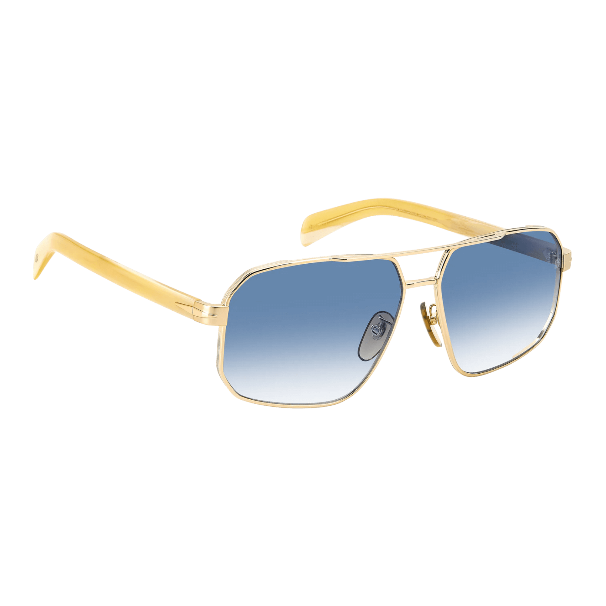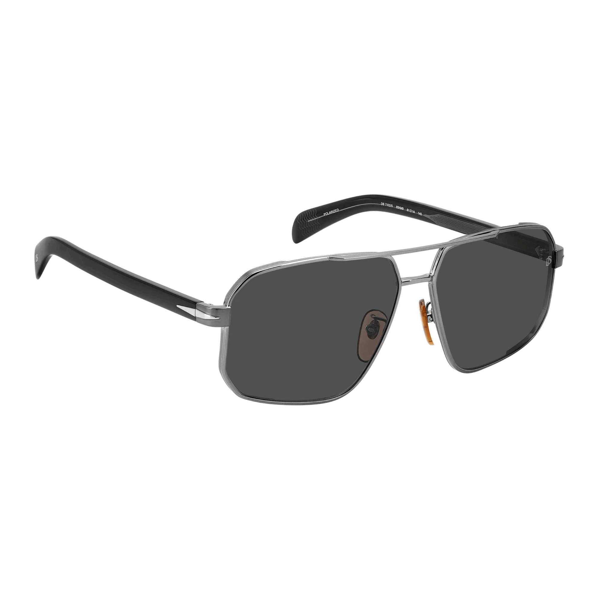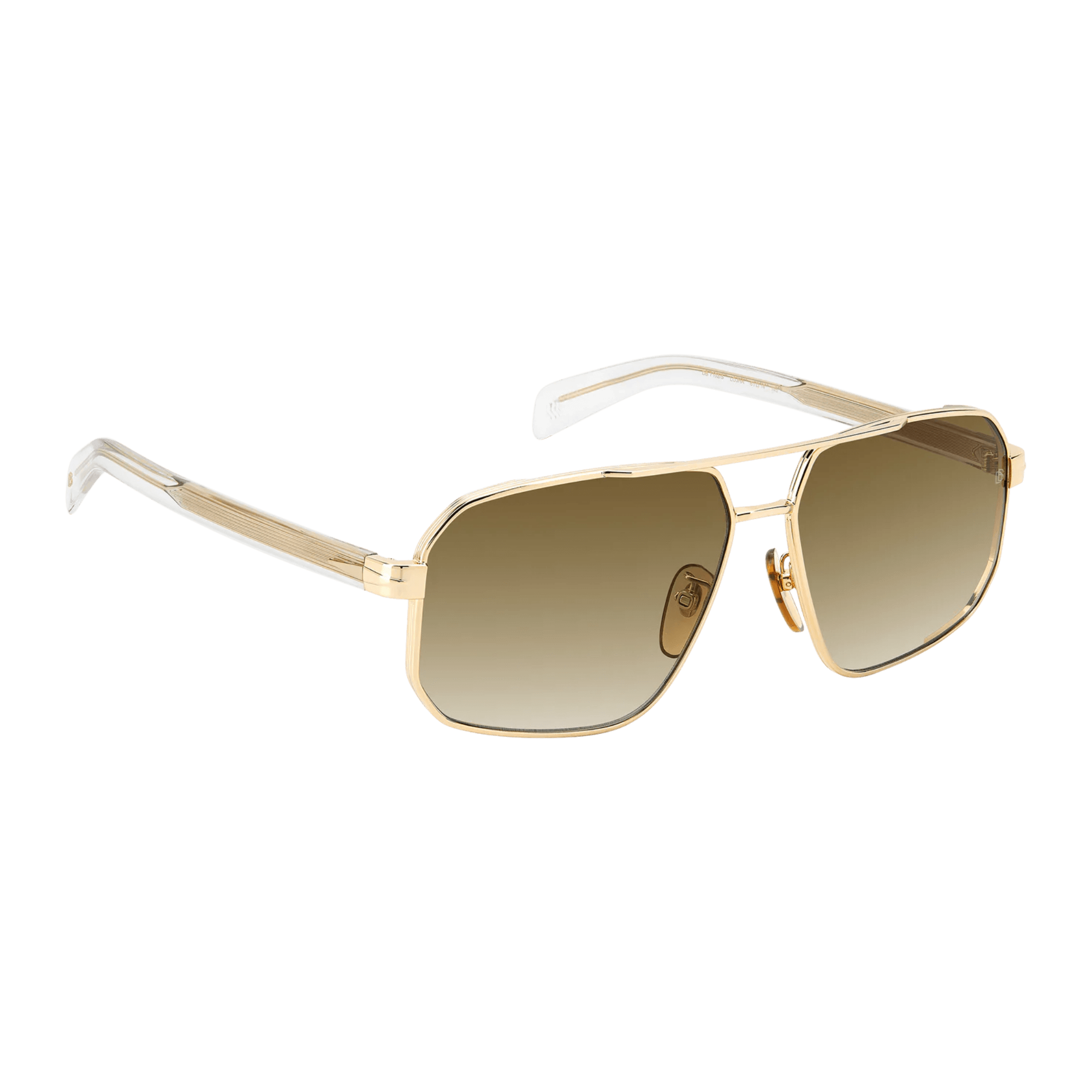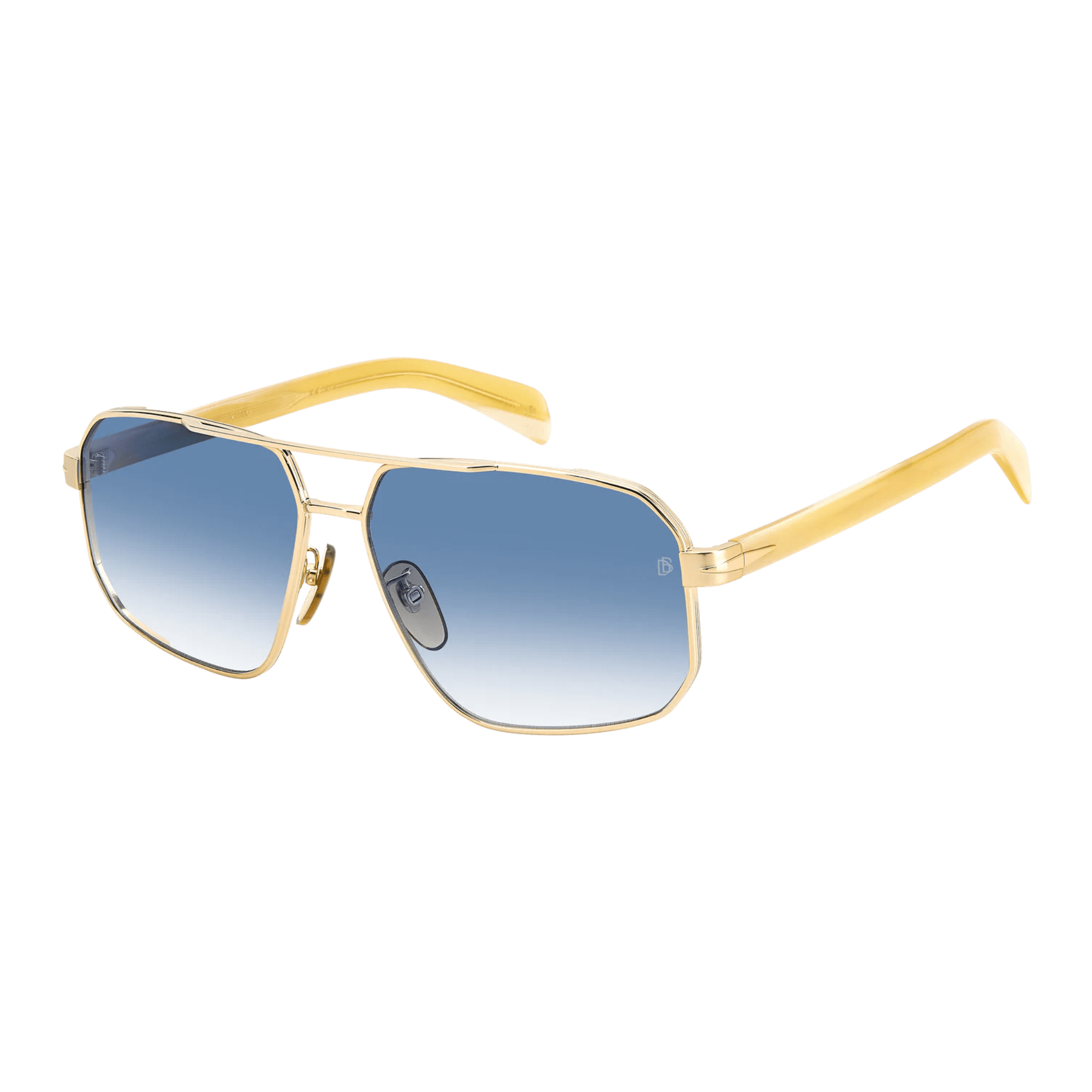 มีสะพานคู่ด้านหน้า, แว่นกันแดดเหล่านี้ได้รับการออกแบบมาสำหรับผู้ชายที่มีความซับซ้อนและมีเสน่ห์ที่น่าหลงใหล. กรอบโลหะ, ประดับด้วยโทนสีอันสง่างาม, โชว์รายละเอียดอันเป็นเอกลักษณ์ที่บ่งบอกถึงแบรนด์: แกนลวดโลหะที่แกะสลักพร้อมตราคำว่า David Beckham, รูปสี่เหลี่ยมขนมเปียกปูนที่ได้รับแรงบันดาลใจจากปีกบนขมับ, และโมโนแกรม DB บนปลายที่ขึ้นรูป.